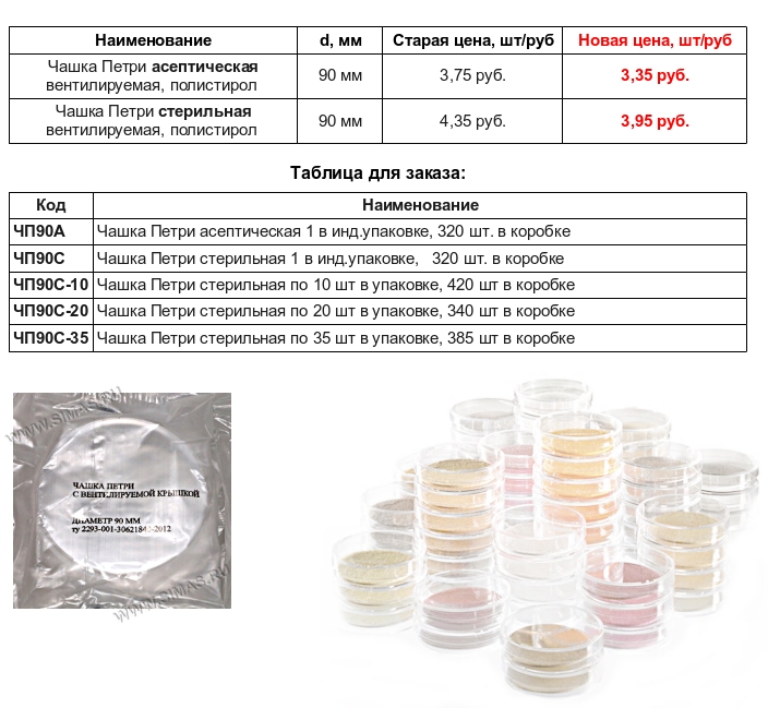 | Главная - > Новости -> Анонс -> События -> Акция! Снижены цены на российские Чашки Петри до 31 декабря! | |