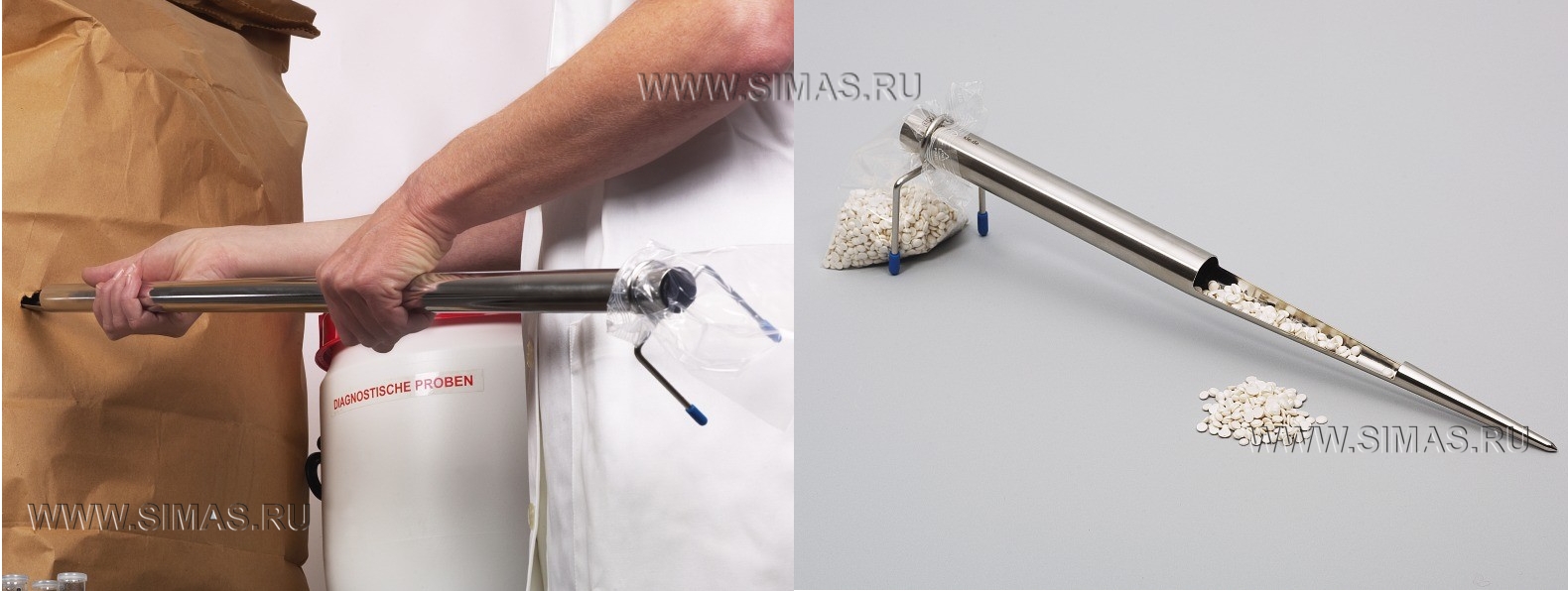 Приемник вводят в мешок или бак, образец извлекают с помощью пикообразной трубки с полукруглым сечением.