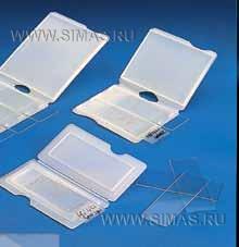 Представляют собой надежную защиту для предметных стекол, размеры которых составляют 76х26 мм, при пересылке образцов: для каждого предметного стекла предусмотрен отдельный отсек с опорными нервюрами для предотвращения повреждения образца. Особенно удобны эти футляры для перевозки цитологических и геологических образцов.
