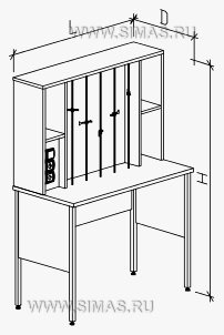 Описание: Комбинация стола-тумбы большого и надстолья-стеллажа пристенного.
