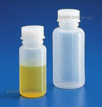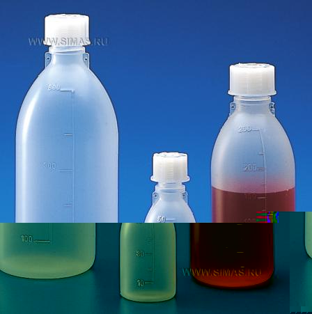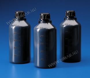 Градуированные бутылки общего назначения, соответствующие требованиям к продовольственным товарам и лекарствам. Широкое горло для удобства наполнения и опорожнения; подходят как для жидких, так и для порошкообразных веществ. Горло и резьба соответствуют стандартам DIN 13316 и 168.