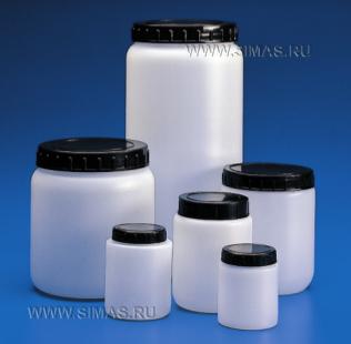 Описание: Материал: полиэтилен повышенной плотности. Цилиндрические банки с крышками и уплотнительными вкладышами. Благодаря широкому горлу удобны для хранения порошков и твердых веществ, кремообразных и полутвердых веществ, кристаллов и гигроскопических субстанций.