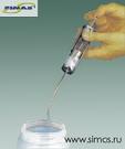 4.1A022 11 «PROBE» – шприц с загнутой на конце иглой. Нержавеющая сталь. Об. 50 мл. Стерилизуемый. Для любых жидкостей.