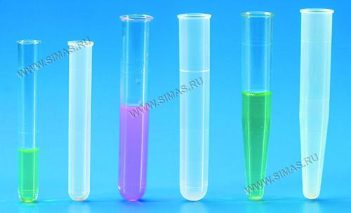 Пробирки одноразовые градуированные с  круглым или коническим дном, с бортиком для общелабораторного использования. Изготовлены из полистирола или полипропилена. Выдерживают воздействие центрифуги.