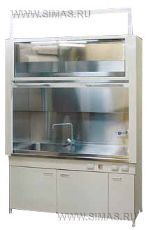 Комплектация: вертикальный экран на противовесах из акрилового стекла, фланец диаметром 200 мм для подключения к вытяжной системе, вытяжка тяжелых газов со столешницы и легких газов в верхней части вытяжной камеры, тумба с вытяжкой в основании шкафа имеет большой объем и съемную полку, пылевлагозащищенный люминесцентный светильник мощностью 40 Вт, выключатель, 2 брызгозащищенных электророзетки с заземлением, сливная раковина из полипропилена, слив, химическистойкий кран для воды итальянской фирмы TOF, гибкая подводка для воды.