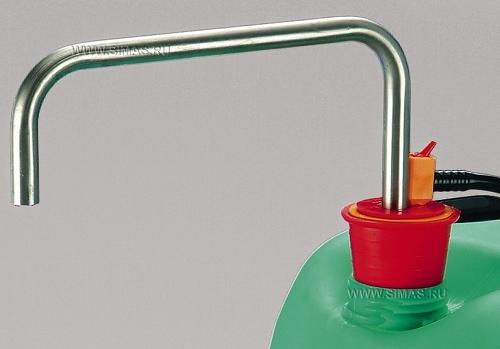 Самотёчный слив насоса (с функцией автоостанова) для растворителей "Мини" (Mini) позволяет осуществлять абсолютно точный розлив без остаточных капель. Благодаря простой системе дозировки производить розлив можно без труда даже в самые небольшие ёмкости, например, в пробирки. На выпуске слива в качестве опции можно закрепить шланг (внутренний Ø 6 мм) с целью уверенного разлива в ёмкости, располагающиеся на некотором удалении.