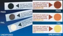Изменяют свой цвет после адекватной экспозиции по трем показателям: цикл стерилизации, время и температура. Цвет интегратора изменяется в течение 3-3,5 минут при температуре 132-135°С и в течение 10 минут при t = 121°С Цвет от белого до черного изменяется необратимо. Дли