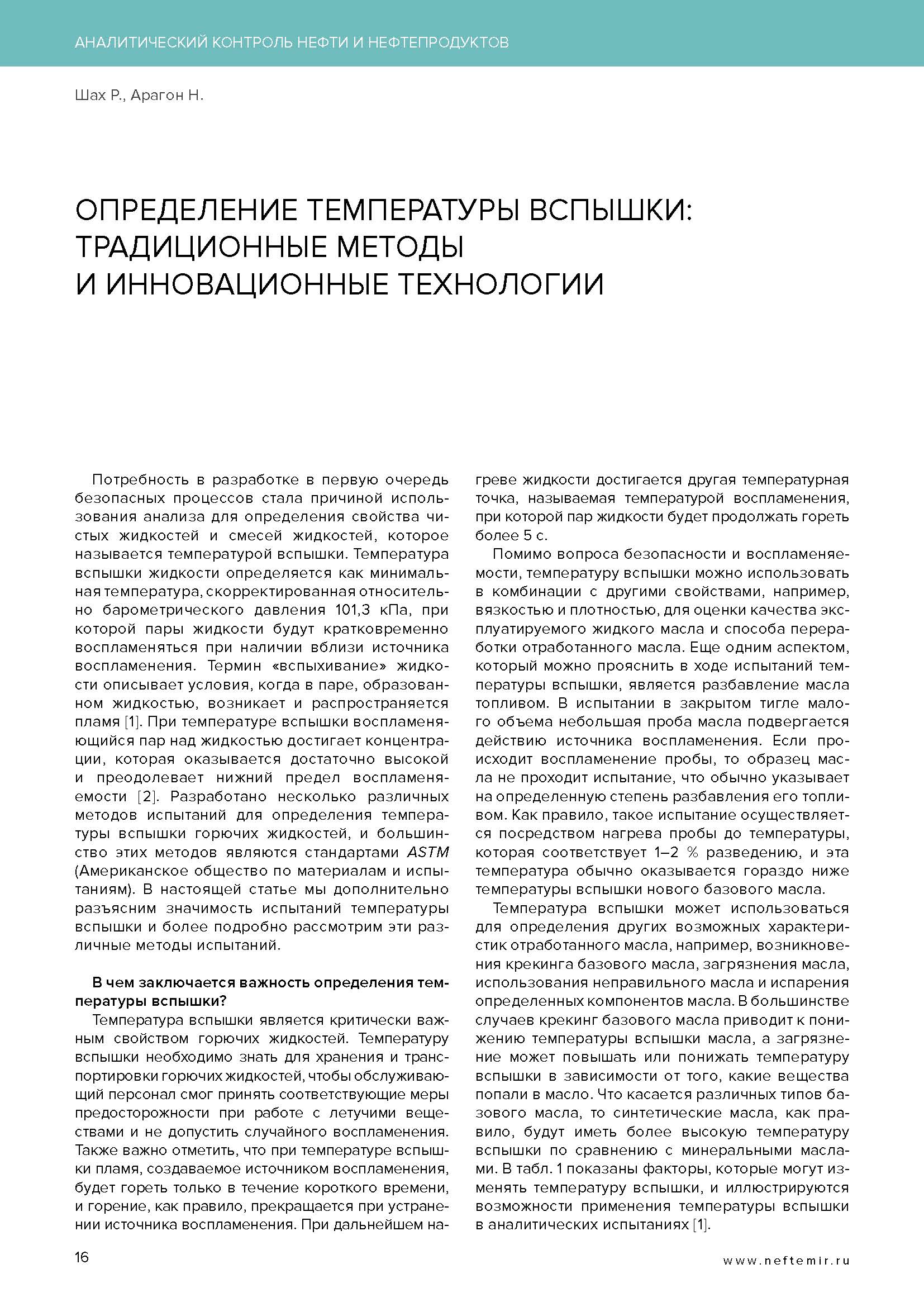 Определение температуры вспышки ГОСТ 4333-87 (метод А); ГОСТ 6356-75; ASTM D93; IP 34, ISO 2719; DIN 51758; FTM 791-1102; NF M 07-019; ASTM D92, D6074, D6158; IP 36, ISO 2592; DIN 51376; FTM 791-1103