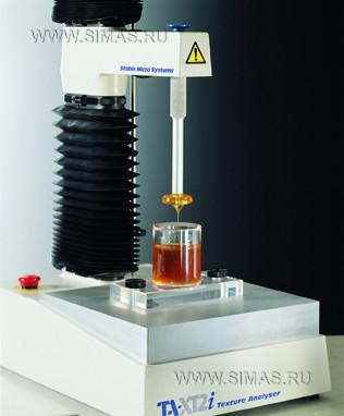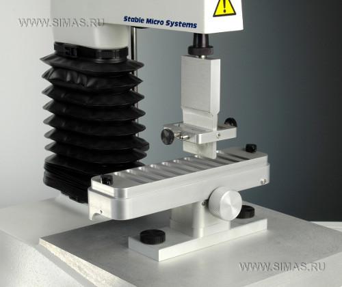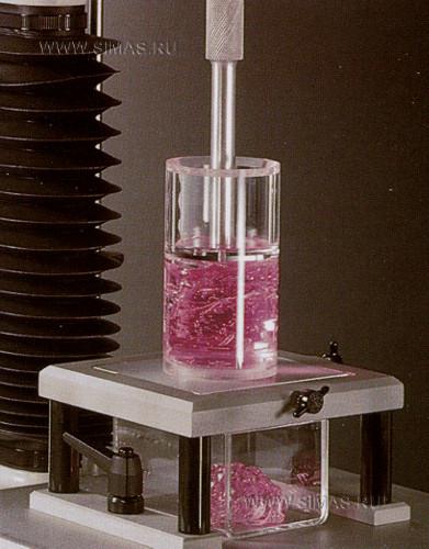В сосуд помещается фиксирующая вставка, и система сосуда/вилки устанавливается на основание, надежно закрепленное на анализаторе текстуры. Вилка подсоединяется к тензодатчику с помощью быстроразъемного переходника.