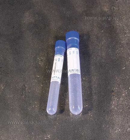 Описание: Цилиндрические пробирки из ПММА или ПП, герметично закрываются пробкой из полиэтилена или резины. Имеют разграфленную этикетку для занесения данных об образце и пациенте. С гранулами и ускорителем образования сгустка. Цвет пробки - голубая.