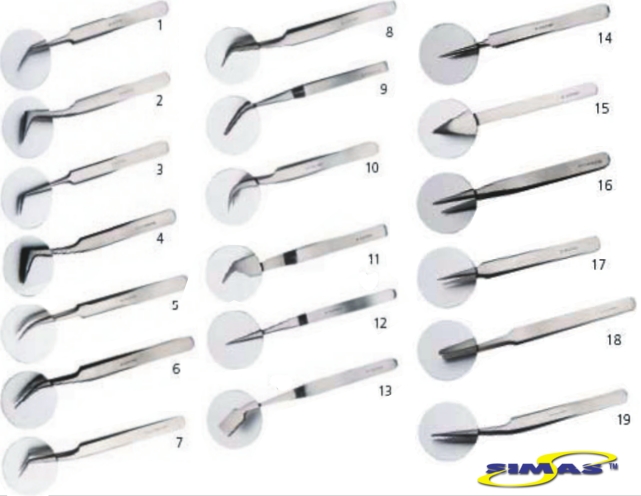 Пинцеты с закругленными краями, пружинящие, с закругленными концами.