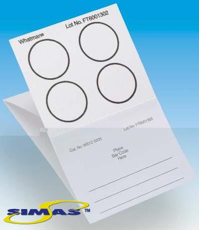 Микро-пластинки FTA с индикатором Подобны микропластинкам FTA, но пропитаны индикатором, изменяющим цвет с розового на белый при нанесении пробы. Рекомендуются для работы с бесцветными пробами, например, клетками эпителия ротовой полости или культурами клеток.
