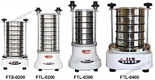 На машину устанавливается до 5 сит диаметром 300 мм. или 400 мм. Система прижима сит состоит из двух резьбовых штанг, оснащенных бакелитовыми прижимными элементами и крышки в виде кольца (или сплошной крышки) из акрилового стекла, через которое засыпается просеиваемый материал.