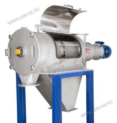 На центральном валу имеются винтообразные лопатки, бережно подающие материала в камеру рассева. Рассев происходит за счет центробежной силы.