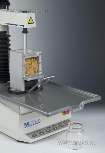 Ячейки имеют передние панели из перспекса для точного расположения лезвий относительно образца и быстрого извлечения для очистки ячейки. Ячейка используется для анализа продуктов, состоящих из частиц, например, зерновых или пикулей в соусе, а также фруктов и овощей. Это испытание сочетает сжатие, сдвиг и экструзию.
