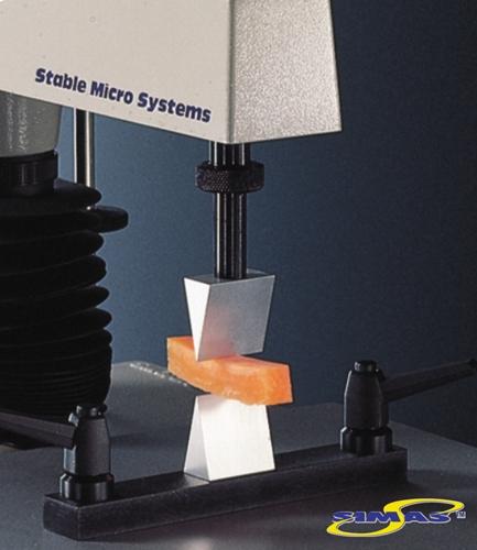 Описание: Это устройство состоит из нижнего и верхнего клиньев с углом заточки 30° и шириной 30 мм. Нижний клин закрепляется непосредственно на основании анализатора текстуры, а верхний – на тензодатчике. Типичные примеры применения включают анализ сыров и овощей, которые закрепляются на нижнем клине; при этом измеряется сила разламывания. Максимальная ширина образца 30 мм.