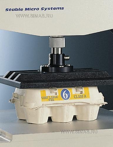 Алюминиевая компрессионная пластина соединена с тензодатчиком через переходник с поперечным штифтом. Испытание на сжатие упаковки, скорее всего, потребует воздействия значительных сил; для такого типа рекомендуется TA.HDplus.