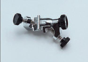 Описание: Самофиксирующийся зажим для двух бюреток, с центральным винтовым креплением. Изготовлен из хромированного металла, зажимные поверхности с покрытием из ПВХ. Позволяет видеть всю шкалу бюретки.